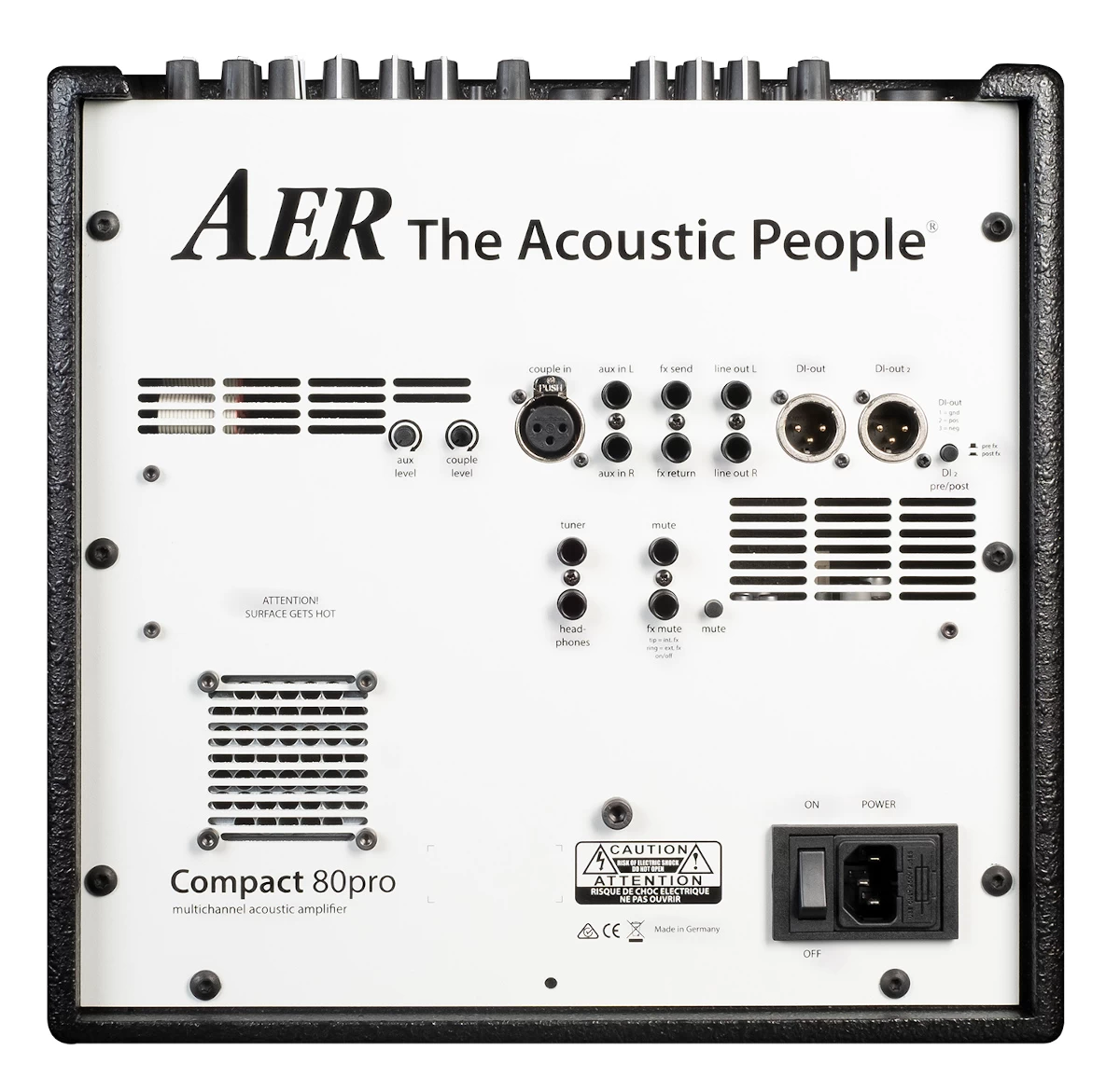 Der Compact 80 pro ist der neue Amp in der AER Reihe. Mehr Kanäle, mehr Power, ein innovatives Couple-System für optimales Miteinander in Bühnensituationen, zwei DI outs für intuitive Verarbeitung bei FOH Anlagen, und das mit der einfachen und bewährten Bedienung aller AER Compact Systeme.