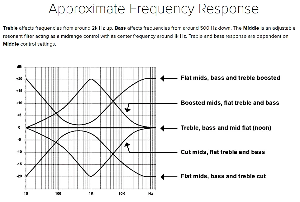 - Bass- und Treble-Ansprache abhängig von der Mid-Einstellung