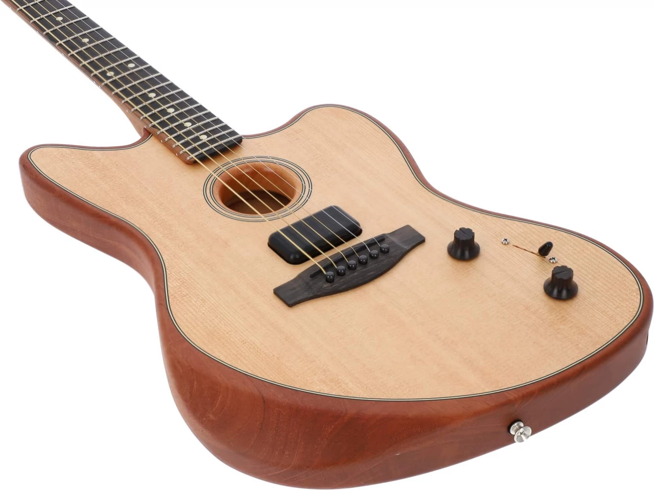 - Drei Pickup-Systeme: der neue Fender Acoustasonic Shawbucker, Fishman Under-Saddle Transducer und Fishman Acoustasonic Enhancer.