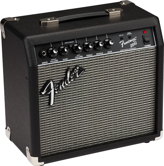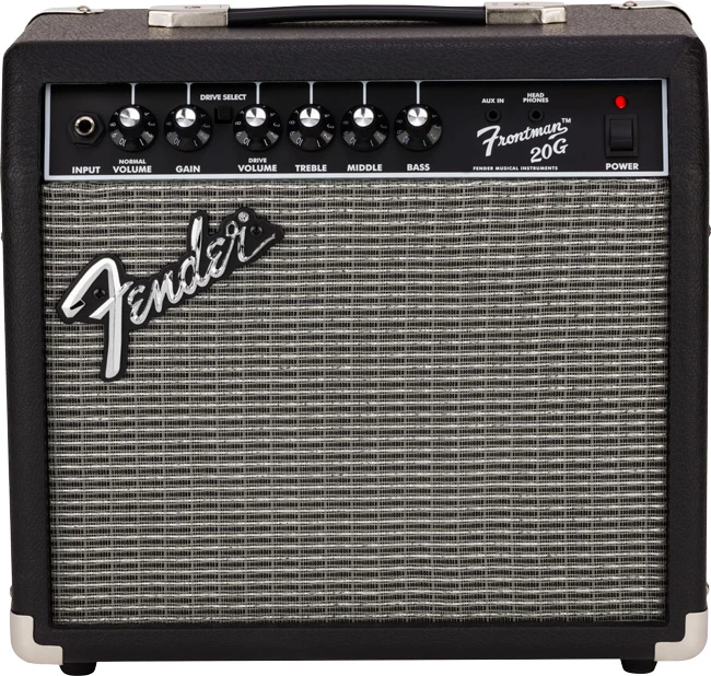 Der Frontman 20G bringt vertraute Fender Design-Details und spitzenmäßige Soundqualität zusammen – zu einem musikerfreundlichen Preis, der garantiert ins Budget passt. Das intuitive Design des 20G ist so klar und selbsterklärend, dass du es auf Anhieb bedienen kannst, sogar als Anfänger. Du hast einen Clean-Kanal mit Lautstärkeregler und drei EQ-Reglern zur Feinabstimmung, außerdem einen separaten schaltbaren Drive-Kanal mit eigenem Lautstärkeregler. Am 1/8” AUX-Eingang (3,5 mm Miniklinke) kannst du externe Audioquellen anschließen. Einen Kopfhörer-Ausgang hat der 20G natürlich auch. Die Ausgangsleistung von 20 Watt wird von einem 8” Special Design Speaker sauber dargestellt. Ein unkomplizierter Amp zum Üben und für spontane Sessions mit Freunden.