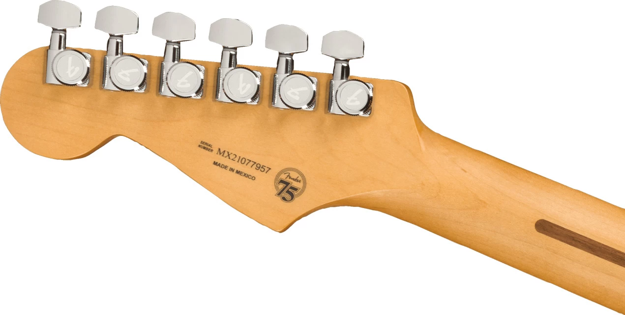 Das Herz dieser Strat® besteht aus drei neuen Player Plus Noiseless™ Pickups – hell, klar, responsefreudig, sie liefern klassischen Strat Ton ohne störendes Brummen. Im Tone-Regler steckt eine Push/Pull-Funktion, die den Hals-Pickup auf Position 1 und 2 aktiviert. So entstehen Klangvarianten, die man bei einer Strat® eher selten findet. Das seidenmatte Finish auf dem Hals im „Modern C” Profil fühlt sich sanft und glatt beim Greifen an, ebenso wie die abgerundeten Griffbrettkanten. Das Griffbrett mit 12″ Radius ist mit 22 Medium Jumbo Frets besetzt, darauf kannst du herrlich flüssig und schnell spielen. Perfekt für Soli und kräftiges Bending. Das 2-Punkt-Tremolo ermöglicht dir klassische Vibrato-Effekte. Tob dich dabei ruhig aus, die Locking Tuner sorgen für hohe Stimmstabilität und erleichtern dir den Saitenwechsel.