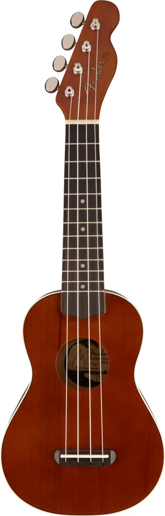Die Fender Venice Ukulele macht ihrem Namen alle Ehre. Die süße Sopran-Ukulele klingt nach Sonne, California Spirit und Venice Beach. Und weil sie so klein und handlich ist, kannst du sie überall hin mitnehmen. Ins Studio, an den Strand oder zur spontanen Session mit Freunden. Ihr heller, fröhlicher Klang ist schon fast ein Must-have für moderne Musiker. Unkompliziert ist sie auch: Der schmale Hals im C-Profil spielt sich sehr angenehm, und der Saitenwechsel geht blitzschnell, weil die Saiten am Steg nur eingezogen, aber nicht geknotet werden. Ein schönes Decken-Binding und die Tele® Kopfplatte mit 4er Reihenmechanik runden das unverwechselbare Fender Design ab. Probiere sie einfach aus. Du wirst merken, wie die Venice Ukulele dich mit ihrem kalifornischen Vibe ansteckt. Sogar im tiefsten Winter.