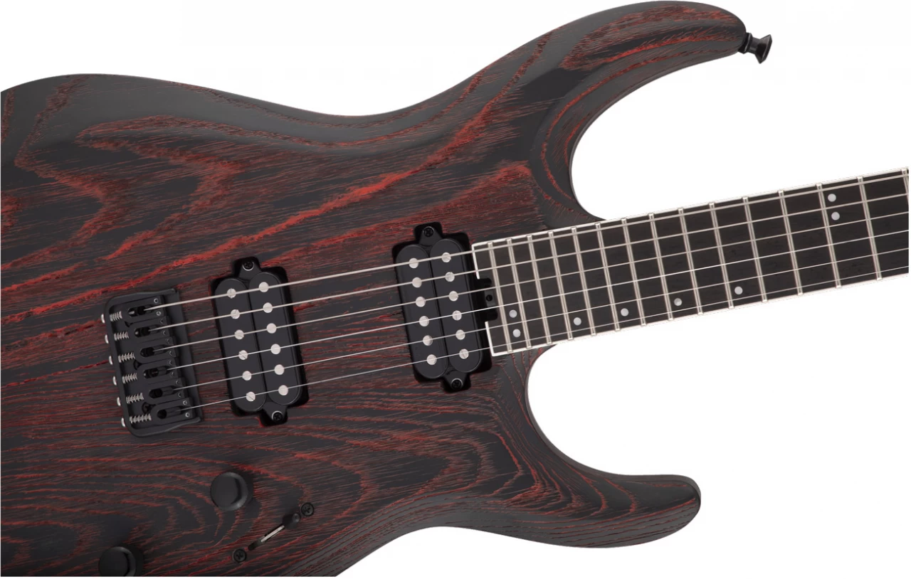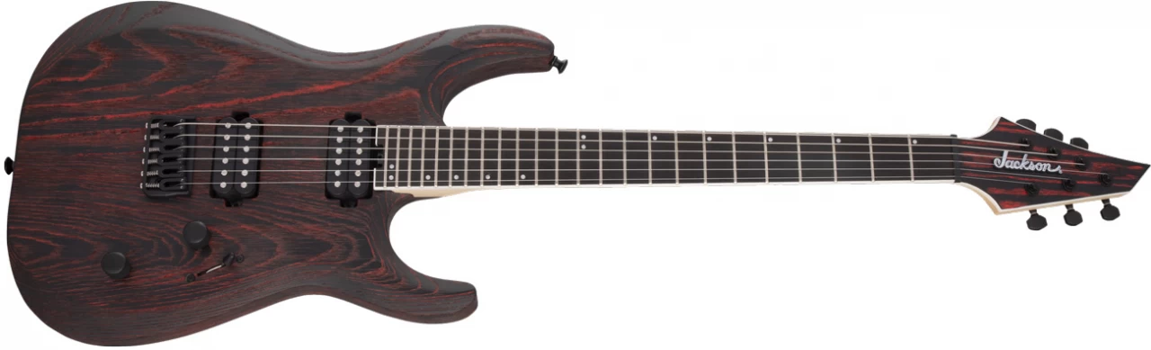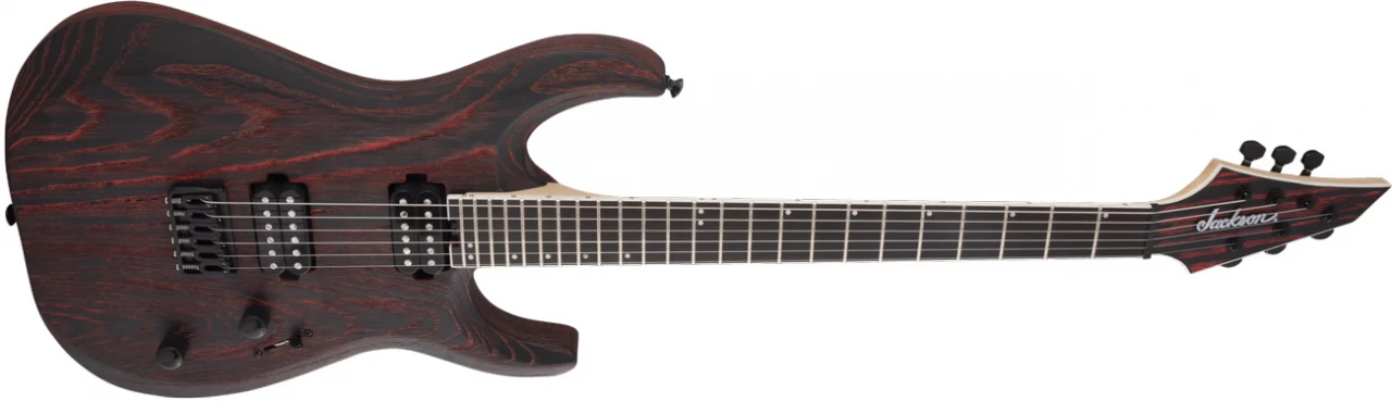 Diese modernisierte Gitarre besticht zudem mit ihrem einmaligen Style mit einer sandgestrahlten Oberfläche, die die Maserung des Eschenholzes hervorhebt und mit einzigartigem Baked-Red- oder Baked-White-Finish in Kombination mit einer farblich abgestimmten 3×3 AT-1 Kopfplatte mit weißer Jackson-Logoplakette und schwarzer Hardware.