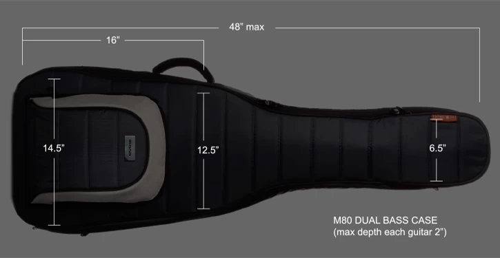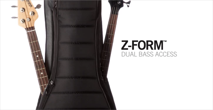 Die Instrumententasche Dual Bass bietet durch das ‘Zig Zag’ Design Platz für 2 Bässe. Die Tasche ermöglicht, durch die voneinander unabhängig nutzbaren Bassfächer, ein hohes Maß an Sicherheit für die zu transportierenden Bässe. Die duale Basstasche überzeugt durch ihre ultra-leichte, mit speziellem Schaumstoff laminierte und mit ABS Platten verstärkte Hülle. Die Tasche verfügt außerdem über die praktischen Clip/Tuck Gurte, sowie das patentierte Neckbrace-Design, welches ermöglicht, den Basshals in der Tasche zu fixieren und stabilisieren, um so diesen vor Erschütterungen zu schützen.