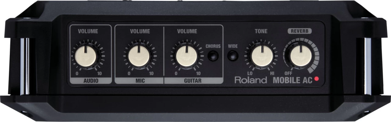 - Regler: AUDIO-Volume / MIC-Volume / GUITAR-Volume / TONE / REVERB / CHORUS-Schalter / WIDE-Schalter