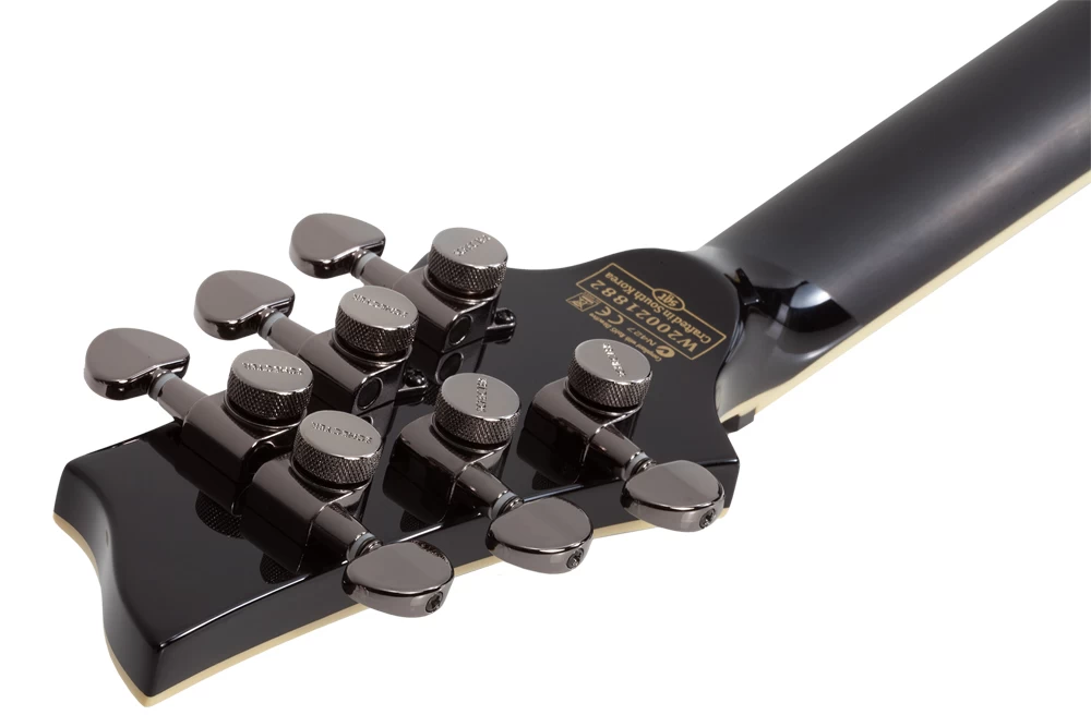 Der karbonfiberverstärkte Hals mit matt lackierter Rückseite, Ebenholzgriffbrett mit 12“ – 16“ Compound Radius und 24 Edelstahlbünden garantiert bestmögliche Bespielbarkeit. Weitere Highlights wie die Lundgren M6 Tonabnehmer, die Schecter Locking Mechaniken und der Graph Tech XL Black Tusq Sattel verdeutlichen, worum es bei dieser Serie geht: Die inneren Werte zählen!