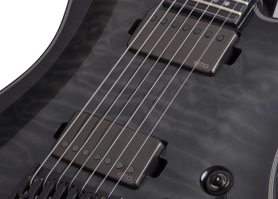 Die mit schwarzen Chromekappen ausgestatteten EMG 66 / 57 Pickups liefern den aktiven Sound, für den die Hellraiser Serie bekannt ist.