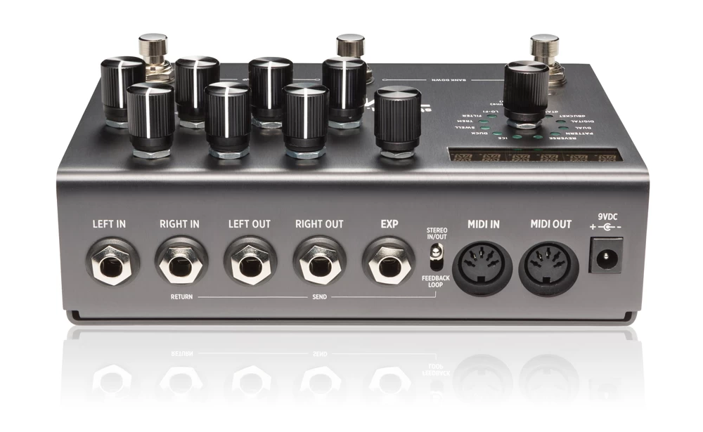 - 12 Delaygeräte wählbar: Digital / Dual / Pattern / Reverse / Ice / Duck / Swell / Trem / Filter / Lo-fi / dTape™ / dBucket™